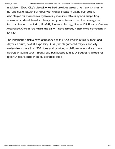10/29/25, 11:25 AM Ministry Of Economy And Tourism, Expo City Dubai Launch UAE’s First Green Innovation District - UrduPoint