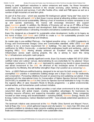 10/29/25, 11:25 AM Ministry Of Economy And Tourism, Expo City Dubai Launch UAE’s First Green Innovation District | Pakistan Point