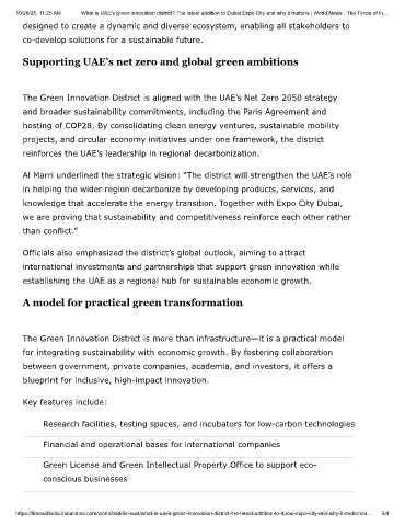 10/29/25, 11:25 AM What is UAE's green innovation district? The latest addition to Dubai Expo City and why it matters | World News - The Times of In…
