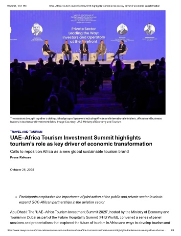 https://www.zawya.com/en/press-release/events-and-conferences/uaeafrica-tourism-investment-summit-highlights-tourisms-role-as-key-driver-of-econ… 1/4