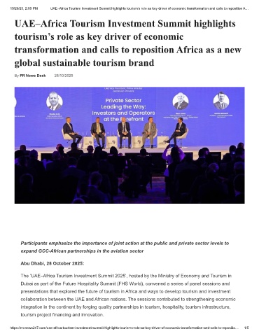 10/29/25, 2:00 PM UAE–Africa Tourism Investment Summit highlights tourism’s role as key driver of economic transformation and calls to reposition A…