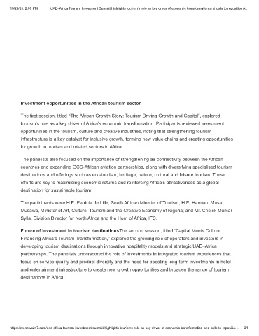 10/29/25, 2:00 PM UAE–Africa Tourism Investment Summit highlights tourism’s role as key driver of economic transformation and calls to reposition A…