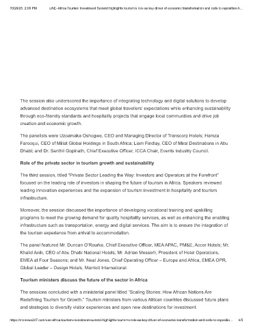 10/29/25, 2:00 PM UAE–Africa Tourism Investment Summit highlights tourism’s role as key driver of economic transformation and calls to reposition A…