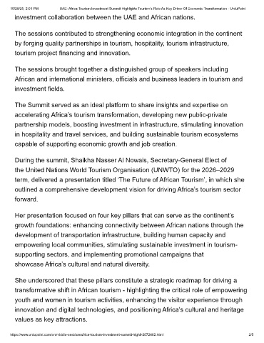 10/29/25, 2:01 PM UAE–Africa Tourism Investment Summit Highlights Tourism’s Role As Key Driver Of Economic Transformation - UrduPoint