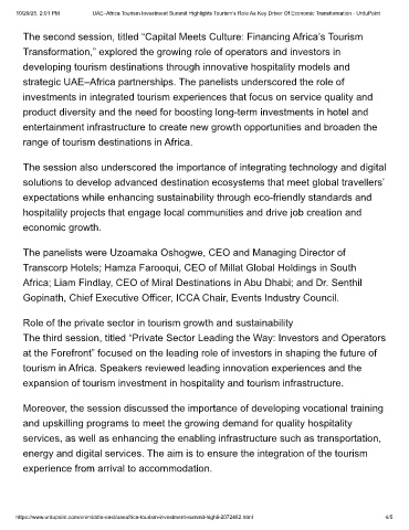 10/29/25, 2:01 PM UAE–Africa Tourism Investment Summit Highlights Tourism’s Role As Key Driver Of Economic Transformation - UrduPoint