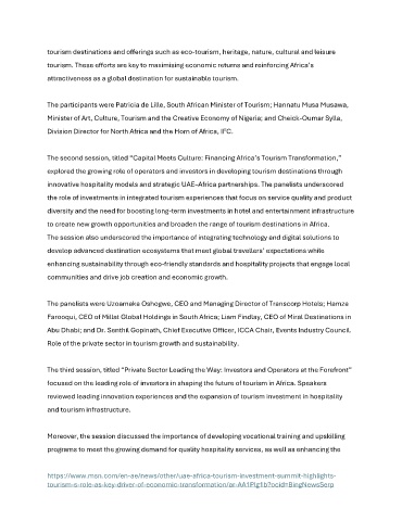 focused on the leading role of investors in shaping the future of tourism in Africa. Speakers