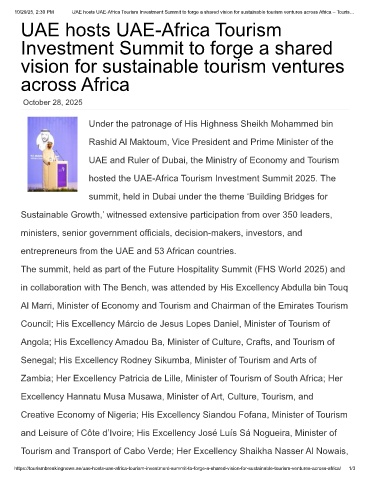 10/29/25, 2:30 PM UAE hosts UAE-Africa Tourism Investment Summit to forge a shared vision for sustainable tourism ventures across Africa – Touris…