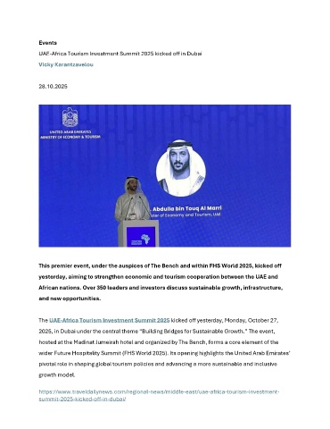wider Future Hospitality Summit (FHS World 2025). Its opening highlights the United Arab Emirates’