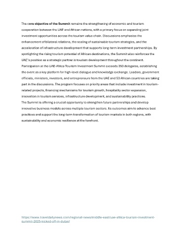 spotlighting the rising tourism potential of African destinations, the Summit also reinforces the