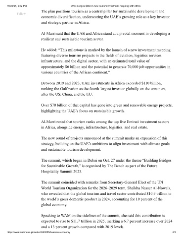 10/29/25, 2:52 PM UAE pledges $6bn in new tourism investment mapping with Africa