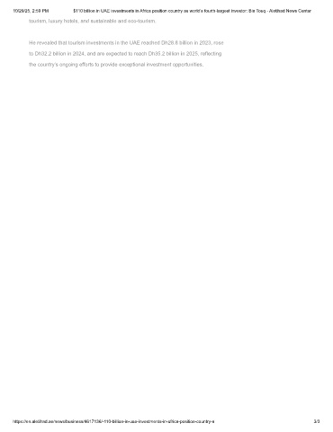 10/29/25, 2:59 PM $110 billion in UAE investments in Africa position country as world’s fourth-largest investor: Bin Touq - Aletihad News Center