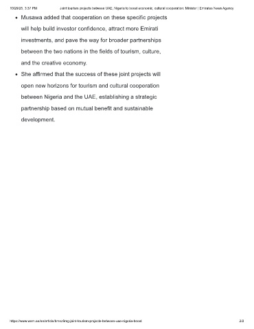 10/29/25, 3:37 PM Joint tourism projects between UAE, Nigeria to boost economic, cultural cooperation: Minister | Emirates News Agency