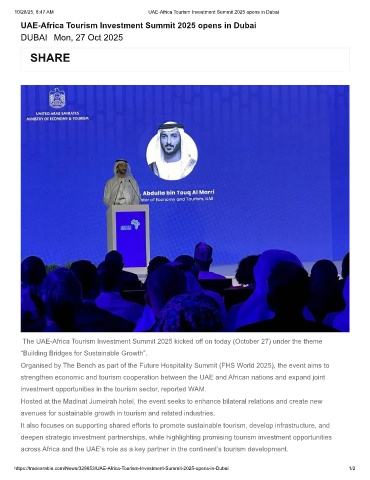 10/28/25, 8:47 AM UAE-Africa Tourism Investment Summit 2025 opens in Dubai