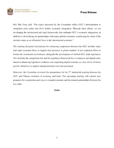 H.E. Bin Touq said: “The topics discussed by the Committee reflect GCC’s determination to
