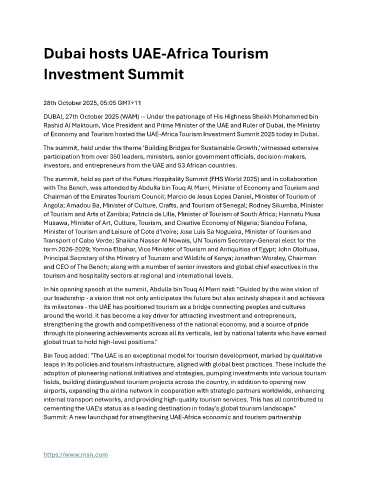 of Economy and Tourism hosted the UAE-Africa Tourism Investment Summit 2025 today in Dubai.