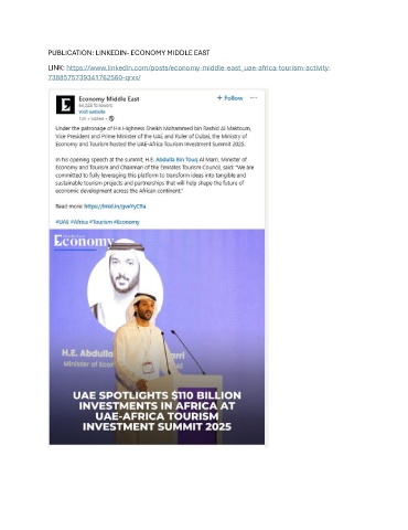 PUBLICATION: LINKEDIN- ECONOMY MIDDLE EAST LINK: https://www.linkedin.com/posts/economy-middle-east_uae-africa-tourism-activity- 7388575739341762560-qrxx/