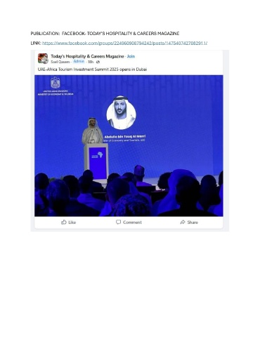 PUBLICATION: FACEBOOK- TODAY’S HOSPITALITY & CAREERS MAGAZINE LINK: https://www.facebook.com/groups/224960908794242/posts/1475407427082911/