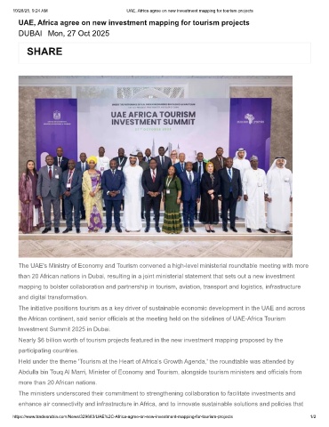 10/28/25, 9:24 AM UAE, Africa agree on new investment mapping for tourism projects