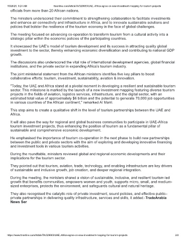 10/28/25, 9:24 AM ttnonline.com/ArticleTA/329683/UAE,-Africa-agree-on-new-investment-mapping-for-tourism-projects