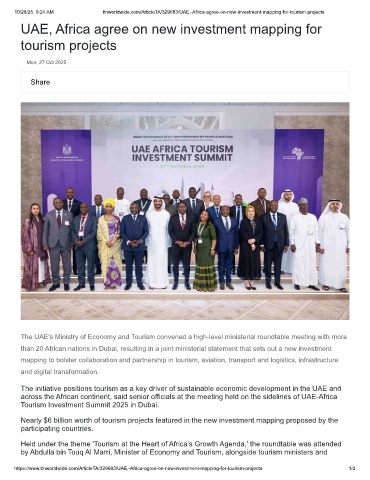 https://www.ttnworldwide.com/ArticleTA/329683/UAE,-Africa-agree-on-new-investment-mapping-for-tourism-projects 1/2