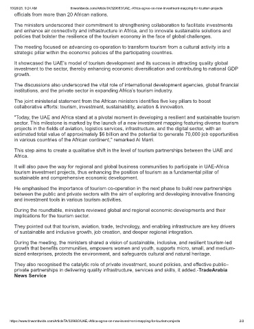 10/28/25, 9:24 AM ttnworldwide.com/ArticleTA/329683/UAE,-Africa-agree-on-new-investment-mapping-for-tourism-projects
