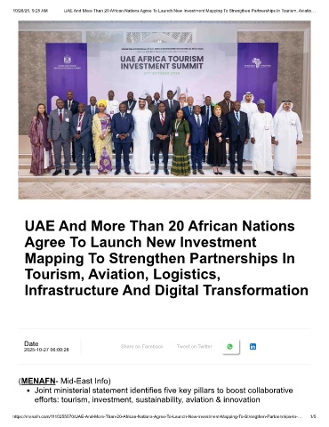 10/28/25, 9:25 AM UAE And More Than 20 African Nations Agree To Launch New Investment Mapping To Strengthen Partnerships In Tourism, Aviatio…