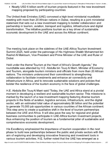 10/28/25, 9:25 AM UAE And More Than 20 African Nations Agree To Launch New Investment Mapping To Strengthen Partnerships In Tourism, Aviatio…