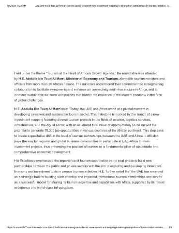 10/28/25, 9:25 AM UAE and more than 20 African nations agree to launch new investment mapping to strengthen partnerships in tourism, aviation, lo…