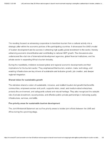 10/28/25, 9:25 AM UAE and more than 20 African nations agree to launch new investment mapping to strengthen partnerships in tourism, aviation, lo…