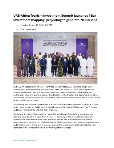 UAE-Africa Tourism Investment Summit launches $6bn