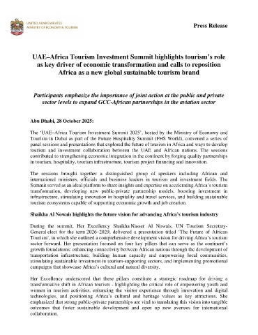 The ‘UAE–Africa Tourism Investment Summit 2025’, hosted by the Ministry of Economy and