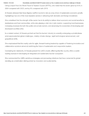 https://www.ttnworldwide.com/ArticleTA/329679/Tourism-makes-up-10pc-of-global-economy-but-faces-challenges-Al-Nowais 2/2