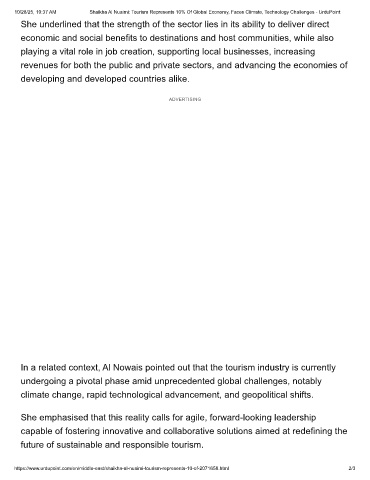 10/28/25, 10:37 AM Shaikha Al Nuaimi: Tourism Represents 10% Of Global Economy, Faces Climate, Technology Challenges - UrduPoint