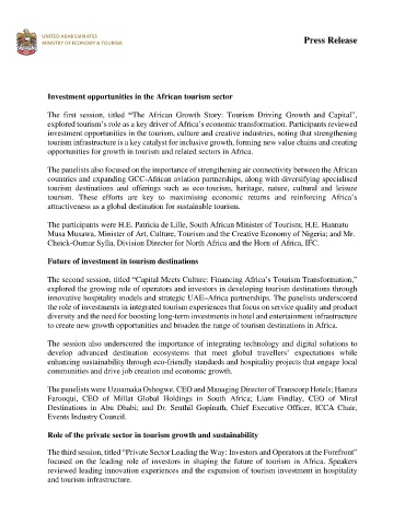 focused on the leading role of investors in shaping the future of tourism in Africa. Speakers