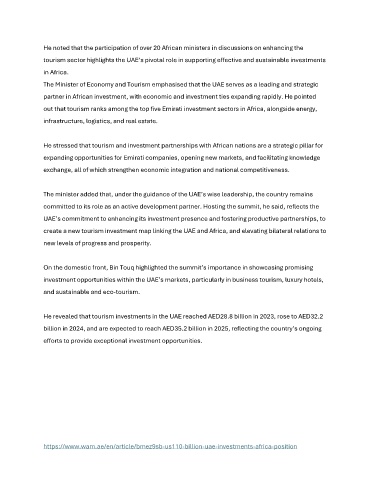 out that tourism ranks among the top five Emirati investment sectors in Africa, alongside energy,