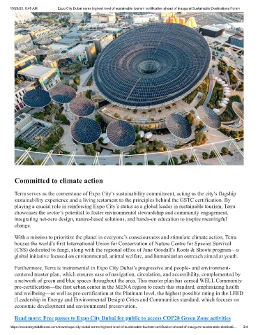 10/28/25, 8:40 AM Expo City Dubai earns highest level of sustainable tourism certification ahead of inaugural Sustainable Destinations Forum