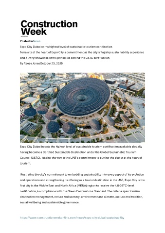 Expo City Dubai earns highest level of sustainable tourism certification