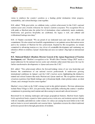 natural and cultural features that make Masfout and Ajman stand out. The recognition showcases