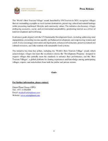 The initiative has three key pillars, including the ‘World’s Best Tourism Village’ award, which