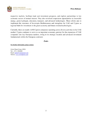 market. Cyprus continues to serve as an important economic gateway for the expansion of UAE