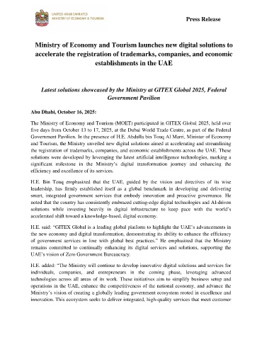The Ministry of Economy and Tourism (MOET) participated in GITEX Global 2025, held over