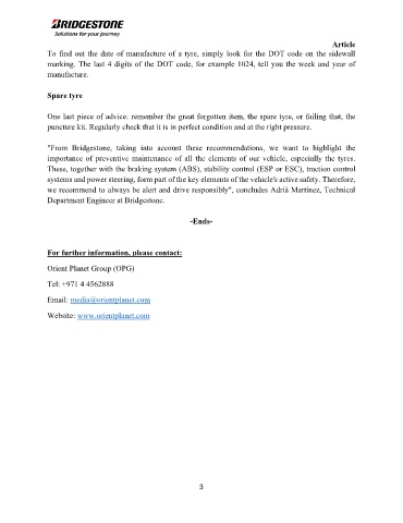 "From Bridgestone, taking into account these recommendations, we want to highlight the