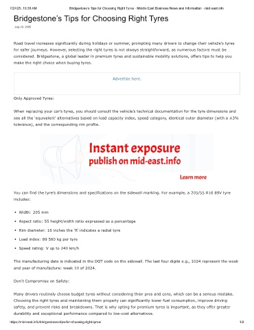 7/24/25, 10:39 AM Bridgestone’s Tips for Choosing Right Tyres - Middle East Business News and Information - mid-east.info