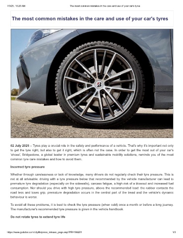 7/3/25, 10:26 AM The most common mistakes in the care and use of your car's tyres