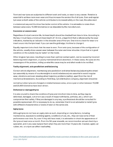 Equally important is to check that the wear is even. Front axle tyres, because of the configuration of