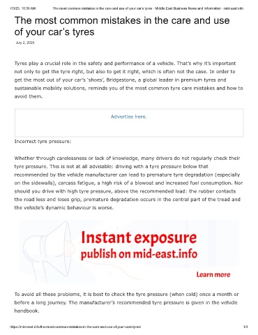 7/3/25, 10:30 AM The most common mistakes in the care and use of your car’s tyres - Middle East Business News and Information - mid-east.info