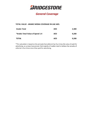 TOTAL VALUE - ARABIC MEDIA COVERAGE IN UAE AED.