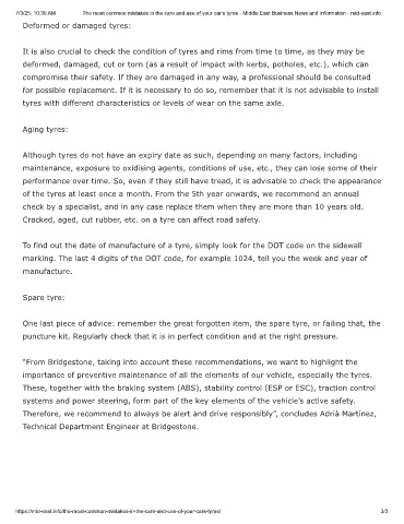 7/3/25, 10:30 AM The most common mistakes in the care and use of your car’s tyres - Middle East Business News and Information - mid-east.info