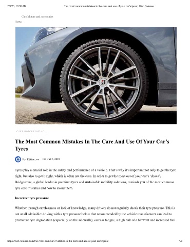 7/3/25, 10:30 AM The most common mistakes in the care and use of your car's tyres | Web Release