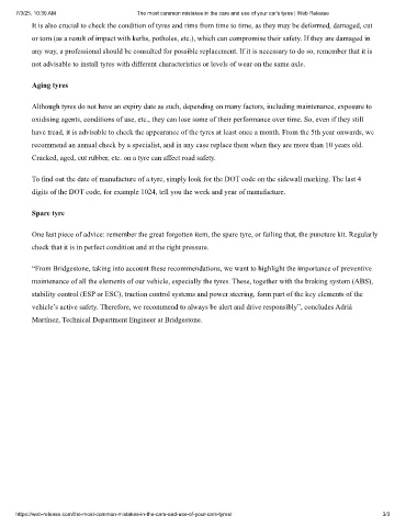 7/3/25, 10:30 AM The most common mistakes in the care and use of your car's tyres | Web Release